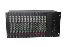 该产品采用最新光纤通讯技术,将视频、音频、开关量、以太网、反向RS-485数据、RS-232数据、RS-422数据、电话等复用在一条光纤上传输,是视频光端机的集中式机框。